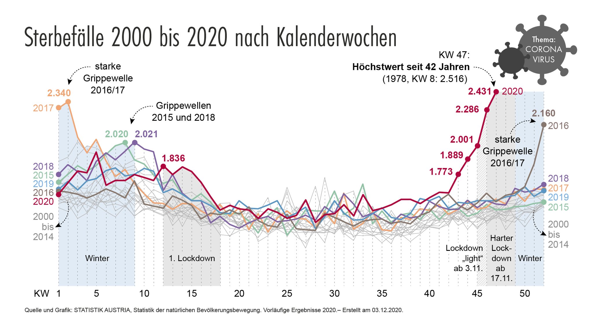 statistik austria on twitter sterbefalle in kw47 mit 2 431 toten in osterreich in einer einzigen woche so hoch wie seit 42 jahren nicht mehr 58 uber dem durchschnitt des vergleichszeitraums der jahre