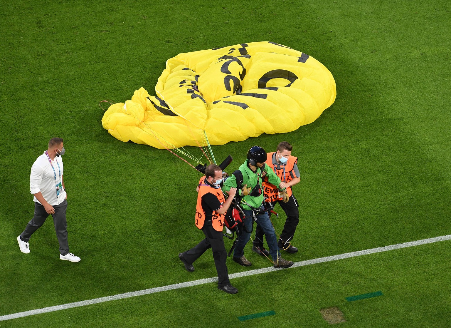em 2021 greenpeace aktivist landet mit gleitschirm vor dfb spiel im stadion